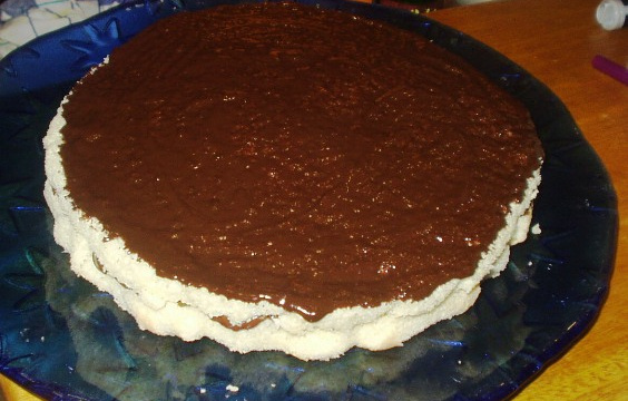 - 4Faire fondre au micro onde le chocolat et le lait et bien mélanger.Verser sur le gâteau.