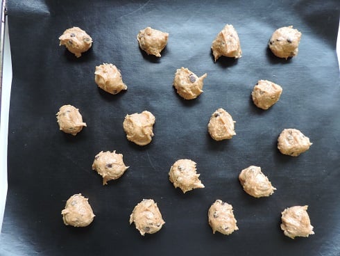 4Former ensuite des petites boules de la grosseur d'une noix à l'aide de 2 c à c et les disposer sur un papier sulfurisé. Enfourner dans un four préchauffé à 180° pendant 10min. Laisser refroidir sur une grille.