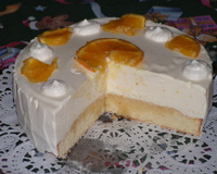 Presser 2 oranges. Passer le jus d'orange à travers un tamis et ne conserver que 125 ml de jus. Chauffer un peu de jus dans une casserole avec le sucre et y dissoudre la gélatine essorée. Reverser ce jus dans la jatte contenant le restant de jus froid. Ajouter le zeste râpé d'une orange. Laisser bien refroidir et avant que la masse ne prenne y mélanger délicatement la brème liquide battue en chantilly. Verser cette crème sur le biscuit et placer le tout au réfrigérateur pendant au moins 2 h. - 3