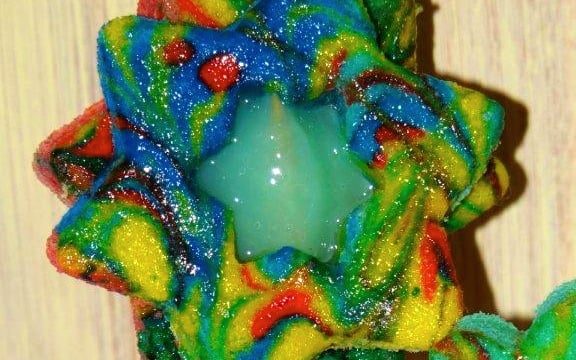 Après les biscuits colorés, vous avez les sucettes biscuits colorées, la pâte est identique, sauf que l'on trouve en son centre, un bonbon acidulé aux fruits ! C'est très bon, très sucré, et aussi très collant !