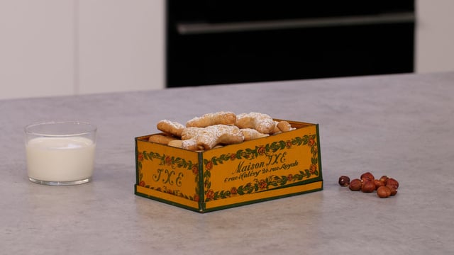 On craque pour ces biscuits bien sablés au bon goût de noisettes. On adore le fait qu'ils se conservent très bien pendant quelques jours. Une bonne idée pour en avoir toujours un ou deux à déguster avec son café ou son thé. Nous nous sommes inspirés des célèbres croissante de lune du commerce.