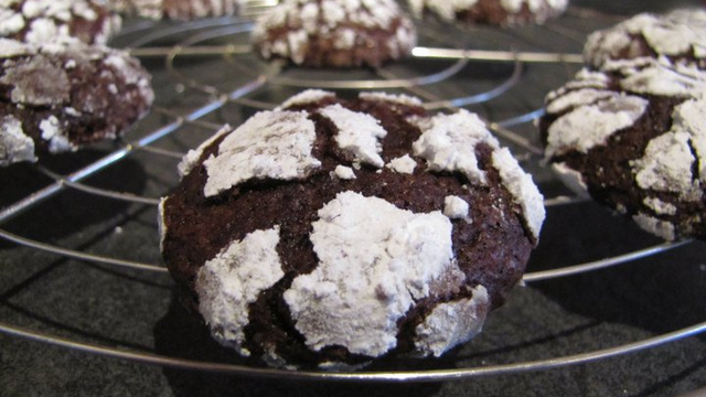 12-14 mn à 180°. La surface des biscuits va se craqueler à la cuisson. Laissez refroidir les biscuits avant de les décoller de la plaque.