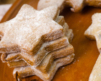 Former une boule et étaler au rouleau à pâtisserie entre 2 feuilles de papier sulfurisé. Découper les biscuits à l'emporte pièce étoile et déposer sur une plaque de cuisson.