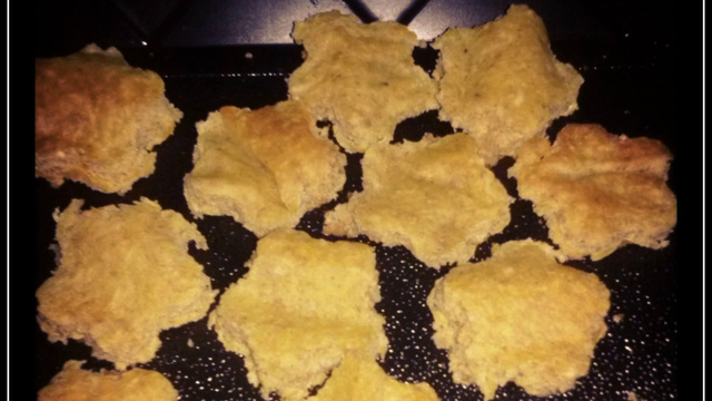 Mélangez tous les ingrédients jusqu'à obtention d'une pâte homogène, mais légèrement collante. Répartir en petit tas sur une plaque de cuisson ou faire un seul grand biscuit.
