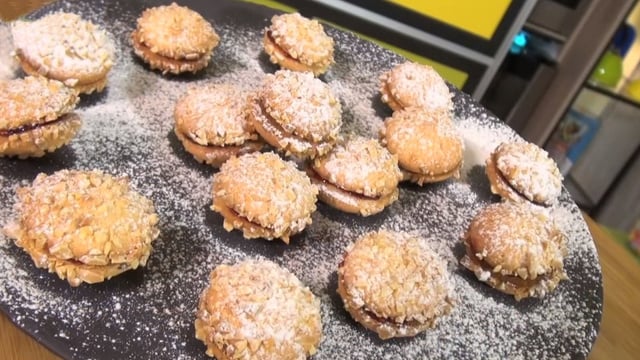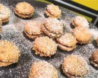 A la sortie du four, laisser tiédir. Garnir une partie des biscuits de confiture ou de ganache et refermer avec un biscuit.