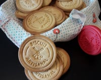 A la main formez une boule bien homogène. Filmez-la et laissez reposer au moins 30 minutes au frais pour pouvoir la travailler plus facilement. Étalez-la sur votre plan de travail préalablement fariné, jusqu’à ce que la pâte fasse 5 mm d’épaisseur. A l’aide d’un emporte-pièce découpez et tamponnez (facultatif) les biscuits et venez les disposer sur une plaque recouverte d’une feuille de papier cuisson.