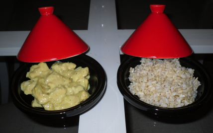 Couper les blancs de poulets en morceaux, les faire revenir dans une cocotte avec les oignons émincés.