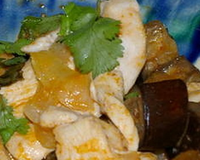 Ajouter le lait de cocopuis le sirop de la boite d'ananas et les tranches d'ananas coupées en 4. Servir avec du riz basmati et parsemé de coriandre votre plat