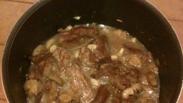 A mi-cuisson, ajouter la petite boite de champignon. Laissez mijoter et rajouter de l'eau de temps en temps si vous voyez que cela s'évapore trop vite.