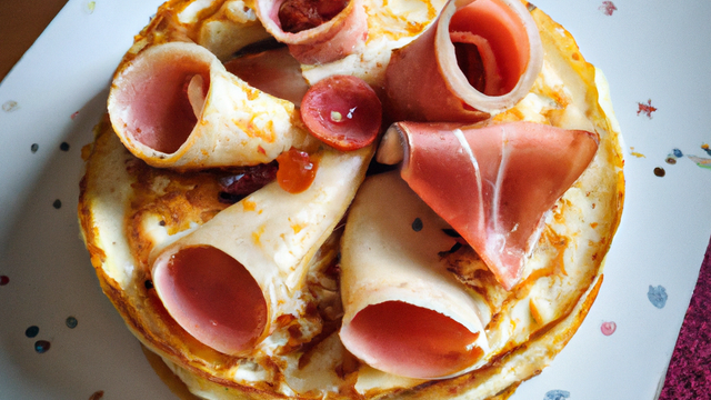 Garnir de jambon coupé dans la dimension du blinis.