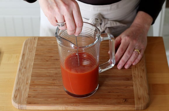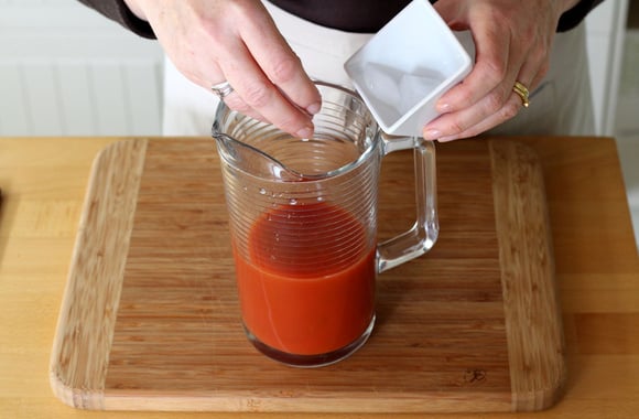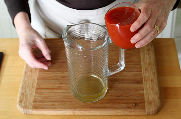 6Ajoutez 25 cl de jus de tomate.