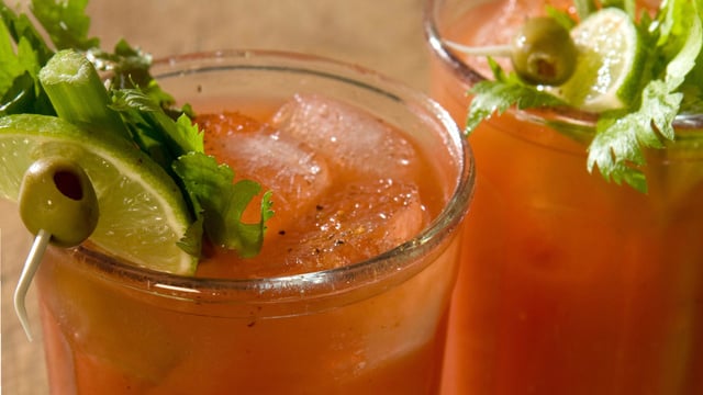 Dans un verre à mélange, je verse les ingrédients sur un lit de glaçons. Je remue avec la cuillère à mélange, puis je verse dans un tumbler. Je rajoute, le sel de céleri, le sel et le poivre à ma convenance. Je décore avec une branche de céleri