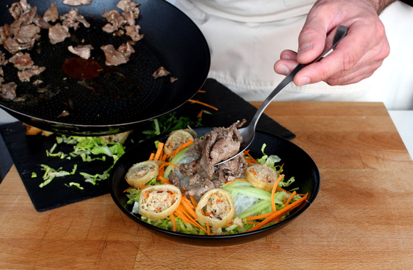 Ajoutez les nems et le boeuf.