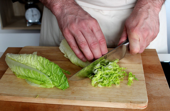 Détaillez la laitue en fines lanières.