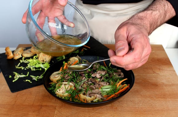 Coupez la viande en tranches très fines, en biais afin de casser les fibres.