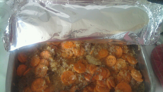 Faites chauffer l'huile dans une sauteuse, mettez-y les cubes de viande, poudrez de farine et faites dorer de tous côtés, puis retirez-les avec une écumoire et mettez de côté dans une cocotte allant au four.(si comme moi vous n'avez pas de cocotte pour le four, prenez un plat à viande et fermez avec une feuille d'aluminium). - 4