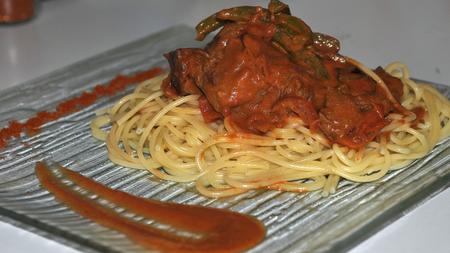 Dressez vos assiettes, personnellement en garniture j'ai pris des spaghettis, mais on peut y servir également du riz sauvage ou la garniture qui semble vous convenir.