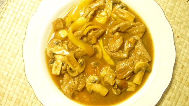 Boeuf sauté aux mangues et aux poivrons