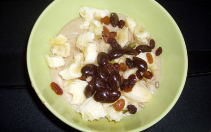 Déguster tiéde avec la banane coupée en rondelle et les graines de courges et les fruits secs.