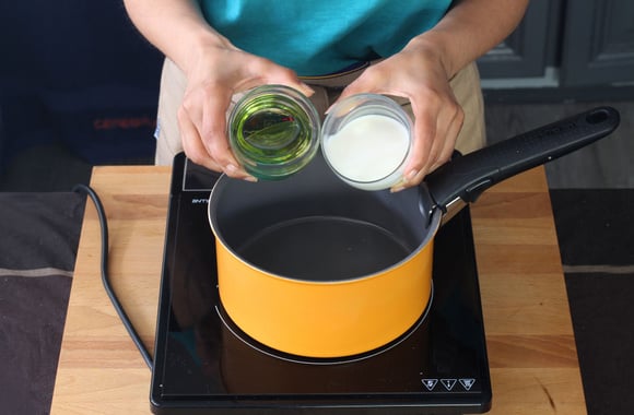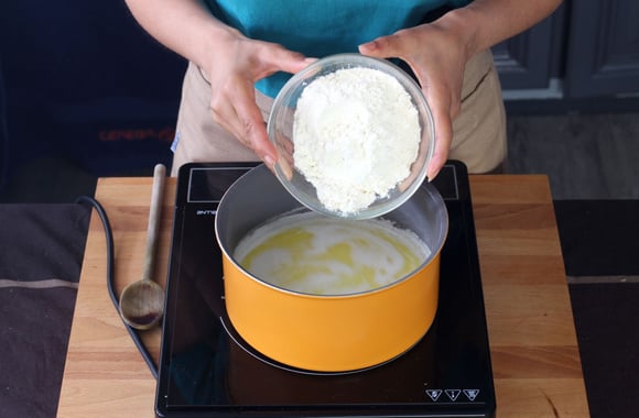 2Ajoutez le sel, le sucre et le beurre en morceaux. Portez à ébullition.