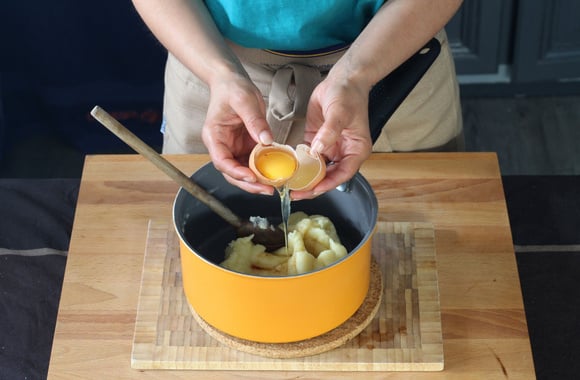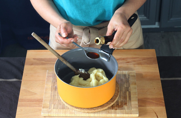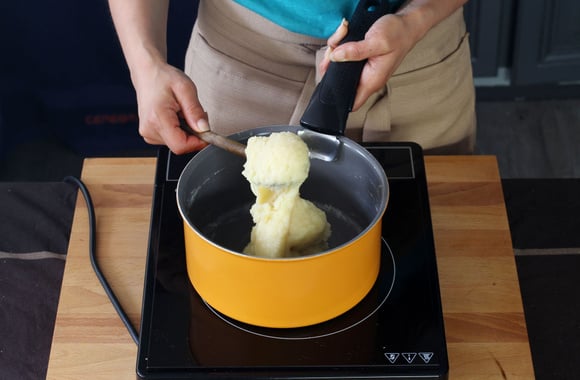 5Remettez sur feu doux et mélangez jusqu'à ce que la pâte se détache des parois de la casserole. Laissez réposer 5 minutes.
