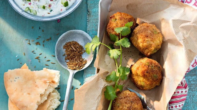 Servez les bouchées accompagnées de la sauce raïta.