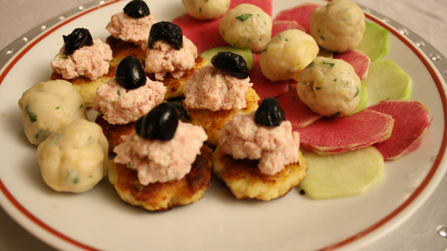 Mélanger. Rectifier l'assaisonnement et former des petites boules. Servir tiéde.