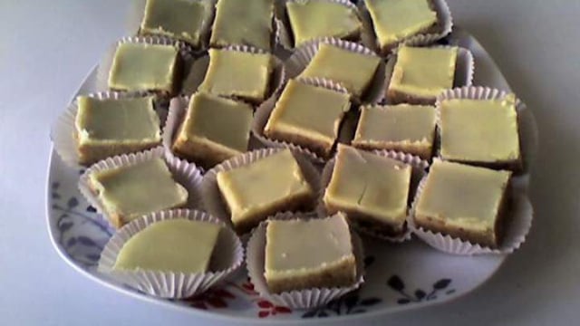 Coupez en carrés et mettre les petits gâteaux dans des caissettes pour une jolie présentation.