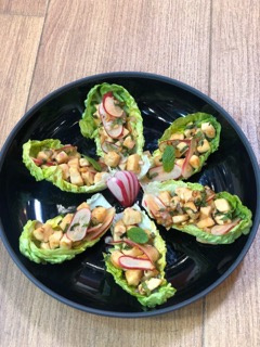 Séparer les feuilles des sucrines avant de les garnir chacune avec la préparation.