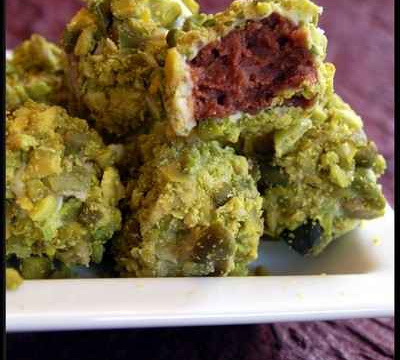 Tempérez votre chocolat blanc au bain marie : amenez-le à 45°C, puis redescendez à 25°C avec un bain marie d'eau froide, puis remontez-le et maintenez-le à 31-33°C. Trempez chaque boule dans le chocolat puis dans une assiette remplie de pistaches concassées.