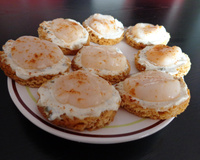Dans chaque tranche de pain d'épice couper un petit rond de la taille de la noix de St Jacques, griller les ronds légèrement.