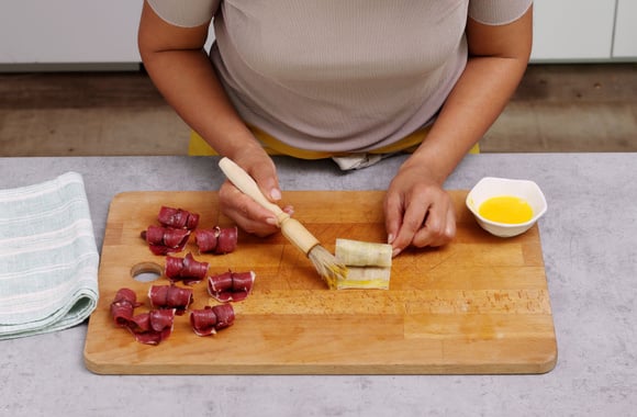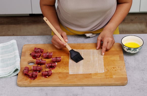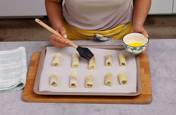 8Badigeonnez les extrémités avec du jaune d’œuf battu pour bien fermer le cigare.