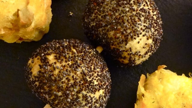 A servir accompagnées d'une sauce fraîche à base de yaourt, de crème et d'herbes. Les boules au pavot peuvent très bien se congeler.
