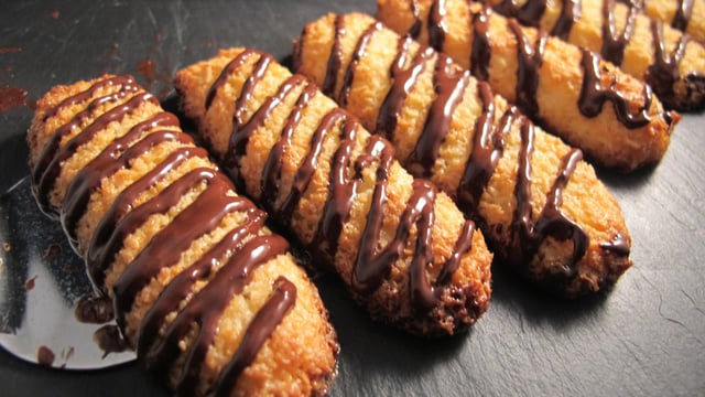 Faire fondre le chocolat et l'étaler par petites bandes sur les boudoirs.