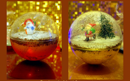 Utiliser des boules de Noël transparentes (s'ouvrant sur le milieu) à garnir que vous trouverez dans les magasins de loisirs créatifs et n'oubliez pas vos décos bûches