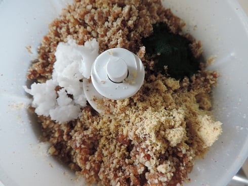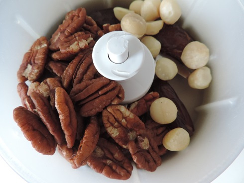 1Dans le mixer, placer les dattes, noix de pécan, noix de macadamia et mixer.
