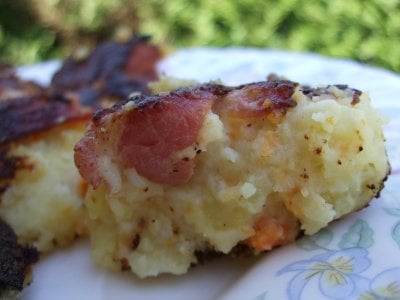 Avec les mains, faire 8 grosses boules de purée, et les enrouler dans les tranches de poitrine fumée