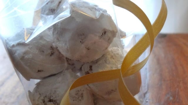 Façonner des boules de la taille d'une noix et les rouler dans du sucre glace. Conserver au frigo.