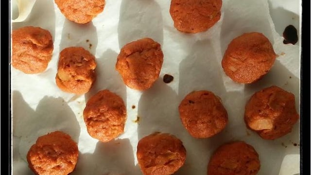 Réaliser les boulettes à l'aide de vos mains (1 boulette =1 c à s du mélange).