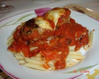 Versez le coulis ds un plat à gratin, mettre sur le dessus les boulettes, ajoutez y des tranches de mozzarelle que vous aurez découpé préalablement et saupoudrez d'1 cs de parmesan fraîchement râpé.