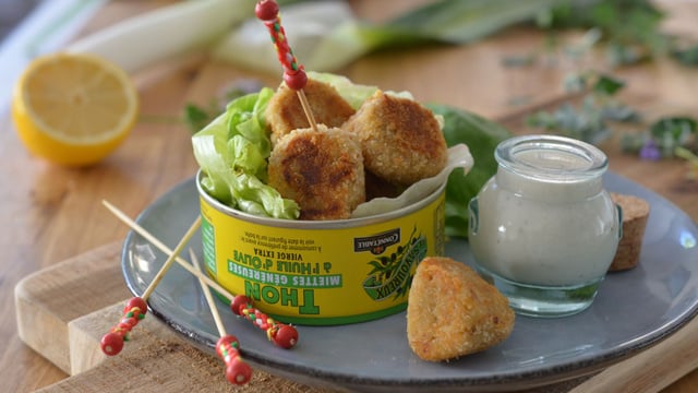 Roulez les boulettes dans la chapelure et faites-les frire dans une poêle avec l'huile de thon réservée.