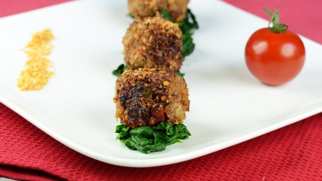 Des boulettes de viande d'agneau hachée bien parfumées avec le croquant de la 'panure' aux cacahouètes.
