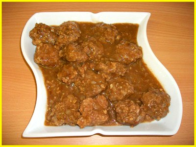 Mélangez et laissez cuire 2mn puis ajoutez les boulettes de viande et laissez cuire à couvert environ 15mn. Servez bien chaud.