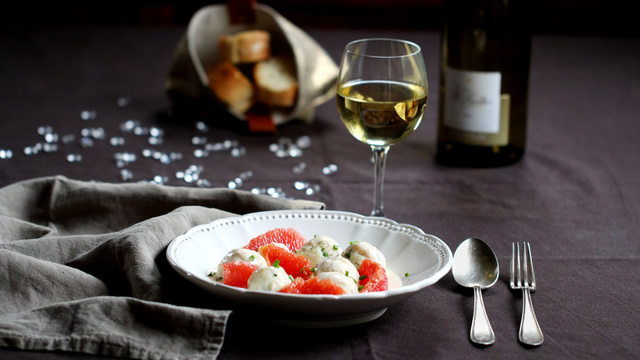 11Dressez les boulettes dans des assiettes chaudes, entourez des quartiers de pamplemousse. Nappez avec la sauce au jus de pamplemousse. Saupoudrez de ciboulette ciselée et dégustez.