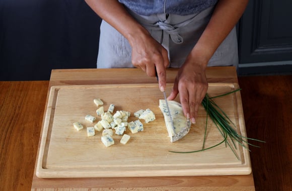 2Coupez la Fourme d'Ambert en dés. Réservez.