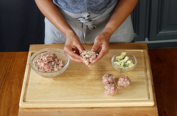12Roulez pour former une boulette de la taille d'une noix. Répétez l'opération jusqu'à former toutes les boulettes de viande.