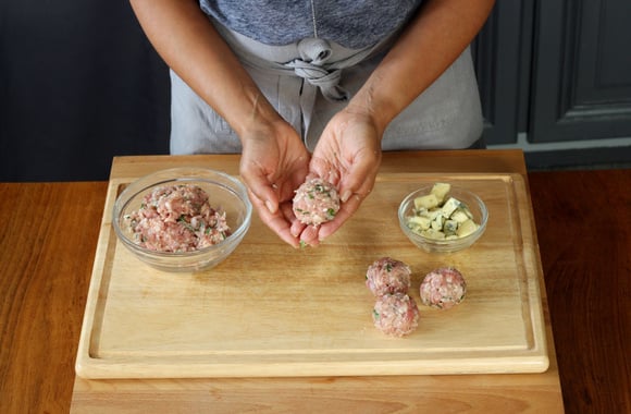 11Refermez la viande autour du dé de fromage.