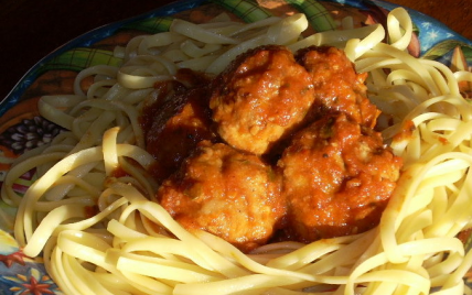 On peut très bien préparer les boulettes la veille et le jour J, il n'y aura plus qu'à faire réchauffer et à cuire les pâtes ; idéal pour rester tranquille avec ses convives.