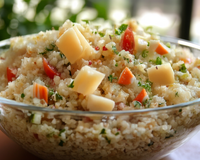 Une salade de boulgour délicieuse, légèrement croquante et goûteuse.