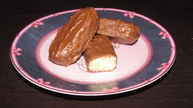 Façonnez la pâte pour former 6 barres de la taille d'un bounty normal et placez-les sur une plaque du four. Enfournez pendant 5 minutes puis sortez-les et laissez-les refroidir.